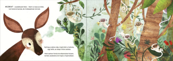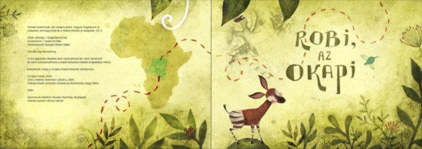 Szigetfalvi Erika kedves verses meséjét Jaskó Emőke bájos grafikái színesítik, ezáltal Robi, az okapigyerek bizonyára a gyerekek kedvence lesz. A könyvet 3-5 éves korosztálynak ajánljuk.